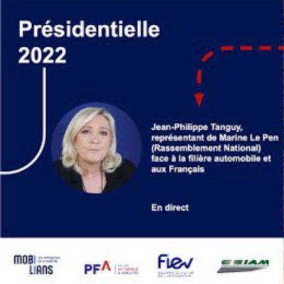 Réunion du 14 Mars 2022 où Jean-Philippe Tanguy, représentant de Marine Le Pen, s'exprime sur les engagements du Rassemblement National face à la filière Automobile.