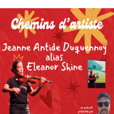 Pour ce troisième épisode de Chemins d'Artiste, Marc Schaefer est allé à la rencontre de Jeanne-Antide Duquennoy alias Eleanor Shine au Grand Mix à Tourcoing. Elle chante pour tous les publics et a créé deux spectacles en chansigné. Le second Bleu commence en ce mois d'octobre à voyager à la rencontre de son jeune public. Il aborde la délicate question de l'Exil de manière simple et très adapté, dans tous les sens du terme, à son public de 6 ans et plus.