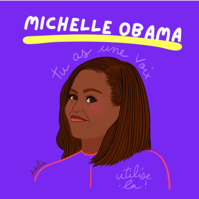 Illustration vignette : l'illustration de Michelle Obama a été réalisée par la talentueuse Adolie Day.