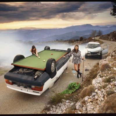 Découvrez les coulisses d'une photo de l'artiste Dingo, de la présence des charmants modèles au retournement de la pauvre Renault 25. Garantie sans trucage !